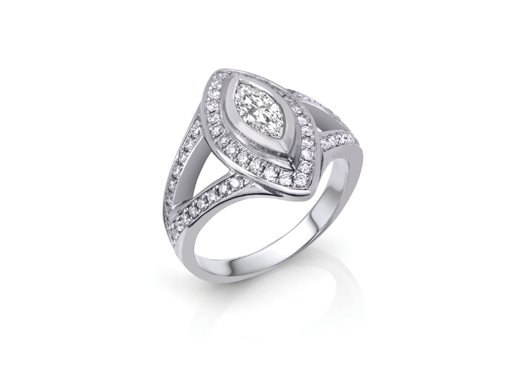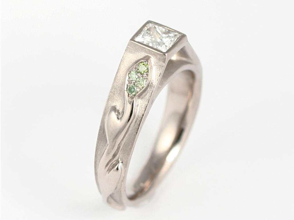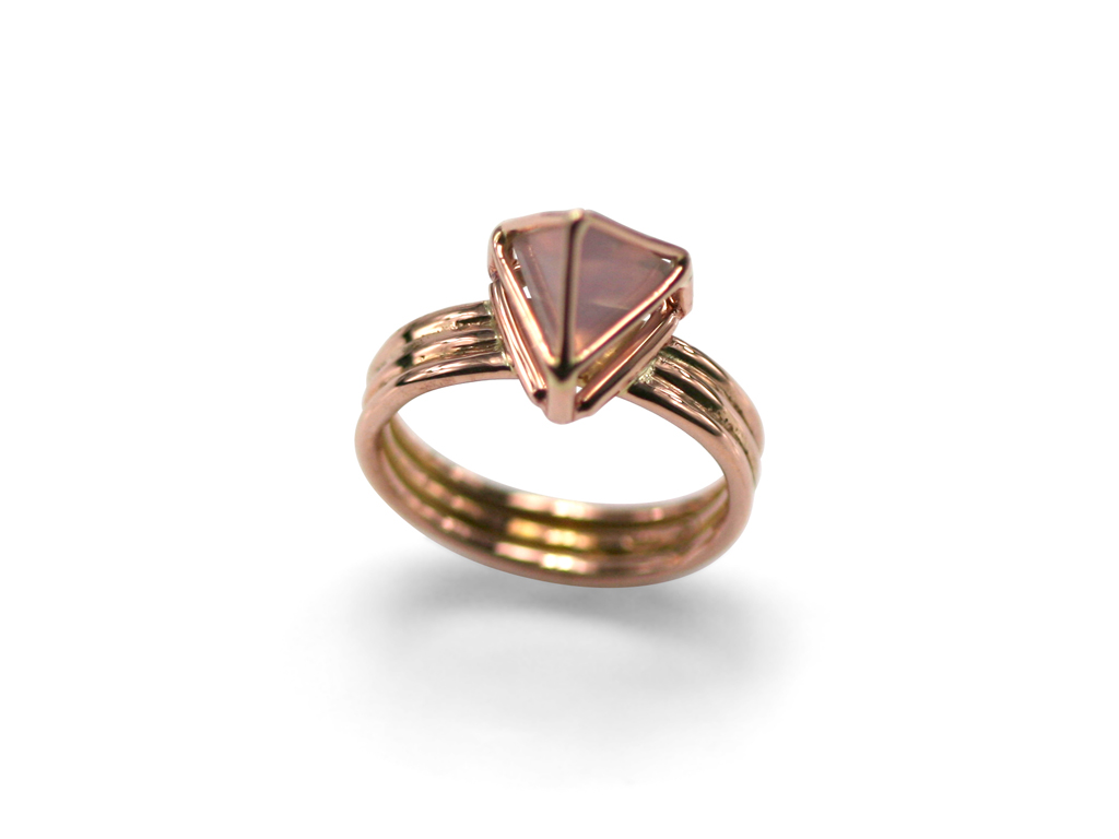 14K palladium white gold, 2ct princess diamond, 2 x .5 ct triangle diamonds, natural pink diamonds