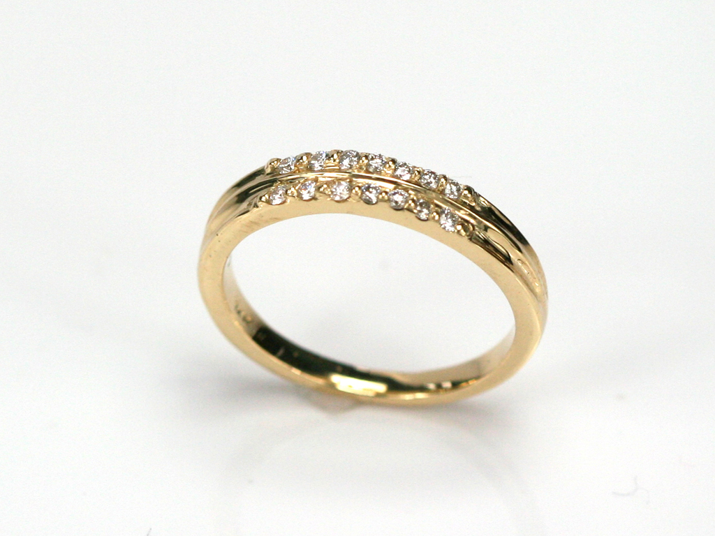 *I did not make this engagment ring- it was designed by my husband and made by a goldsmith at my studio; wedding bands- white or white (16 layer- 18K palladium white gold and sterling silver; yellow and white mokume gane (22 layer 18K yellow gold and palladium, blue diamonds