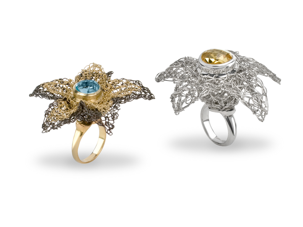 18K yellow gold, steel, blue topaz; sterling silver, citrine